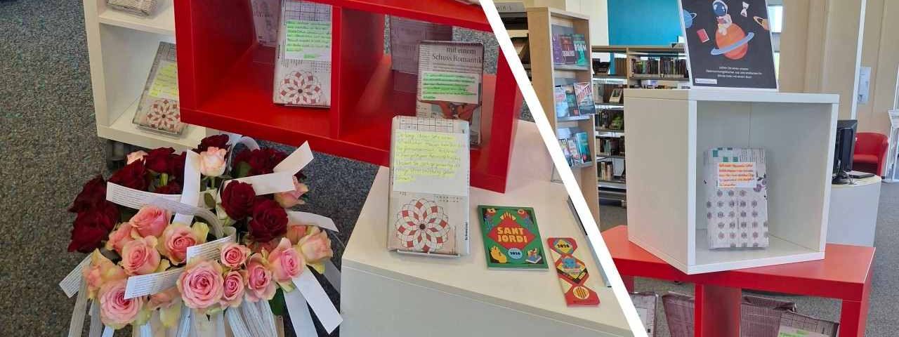 Am 23. April, dem Welttag des Buches standen in den Lichtenberger Bibliotheken Rosen und Bücher, liebevoll verpackt und mit kleinen Besprechungen versehen, bereit. Das „Blind Date mit dem Buch“ wurde von den Bibliotheksbesucher*innen begeistert genutzt. Den Kauf der Rosen finanzierte der Förderkreis der Lichtenberger Bibliotheken.